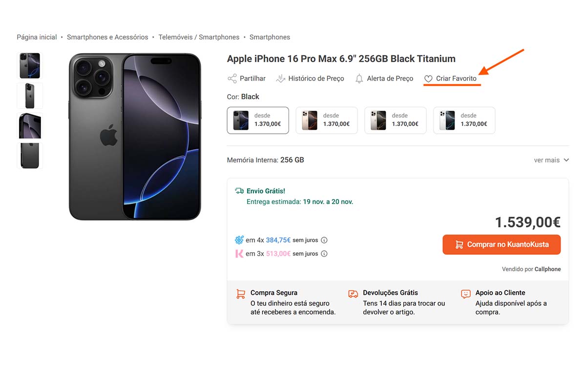 Para além da lista dos produtos favoritos para esta Black Friday, é importante definir um orçamento para cada um dos itens selecionados. Aqui entra o nosso Alerta de Preços.